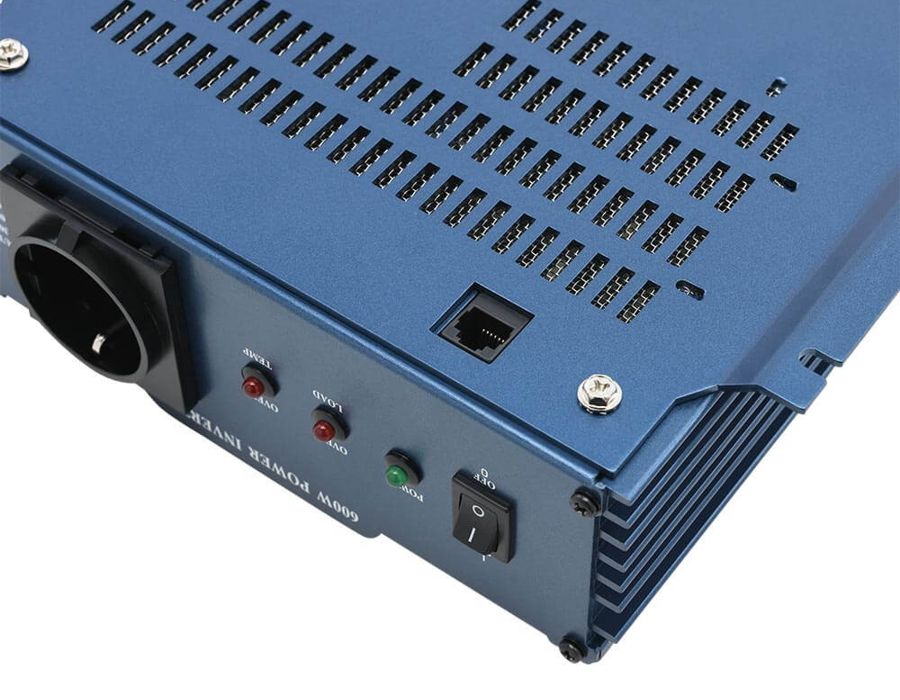 Der Lüfter des 600W Wechselrichter von Fraron wird elektronisch geregelt und schaltet nur ein, wenn es notwendig ist. Das spart Strom, hebt die Lebensdauer und macht das Gerät auch leiser.