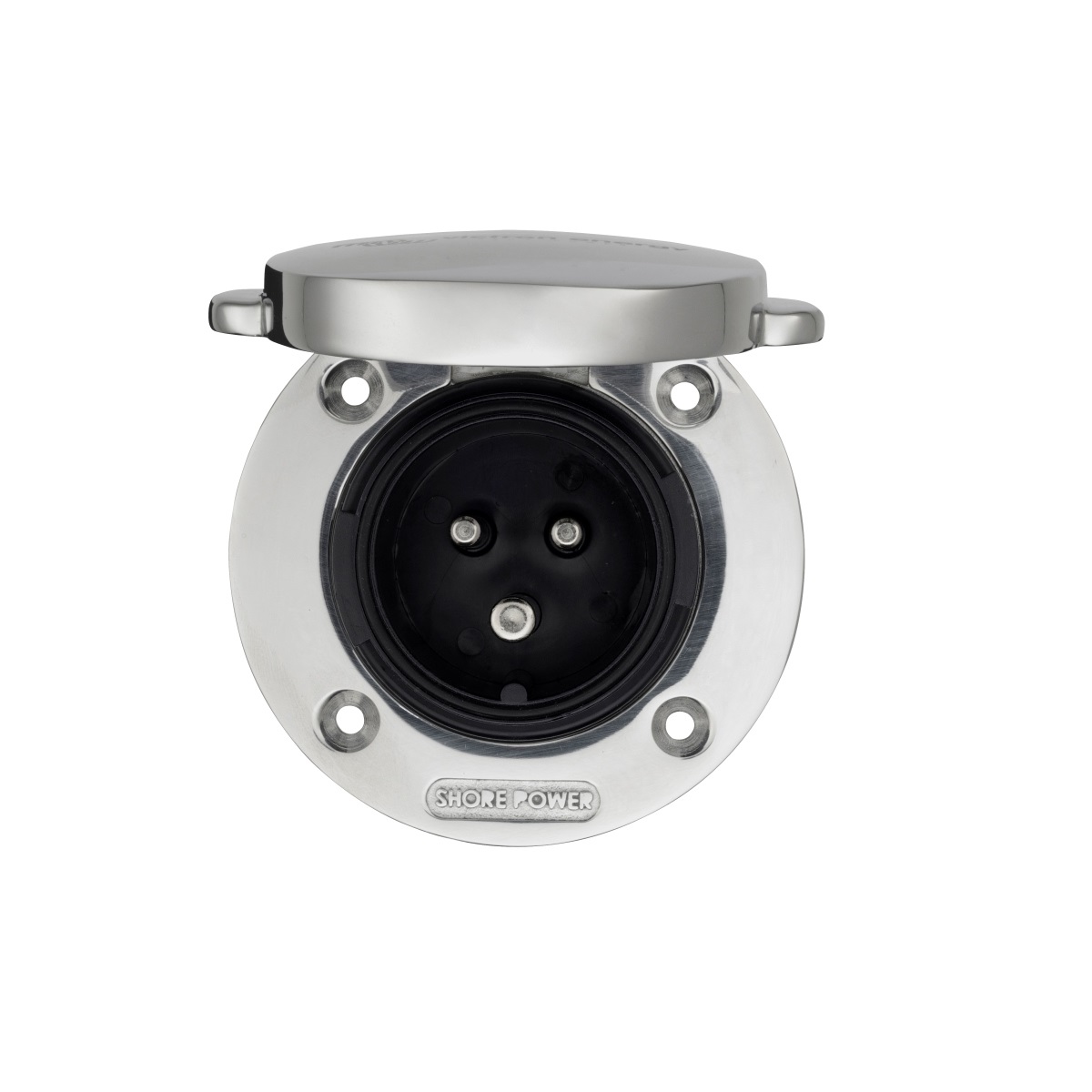 CEE Steckdose von Victron Energy für den Einbau. Spritzwassergeschützt nach IP 56, mit Abdeckung und aus Edelstahl.